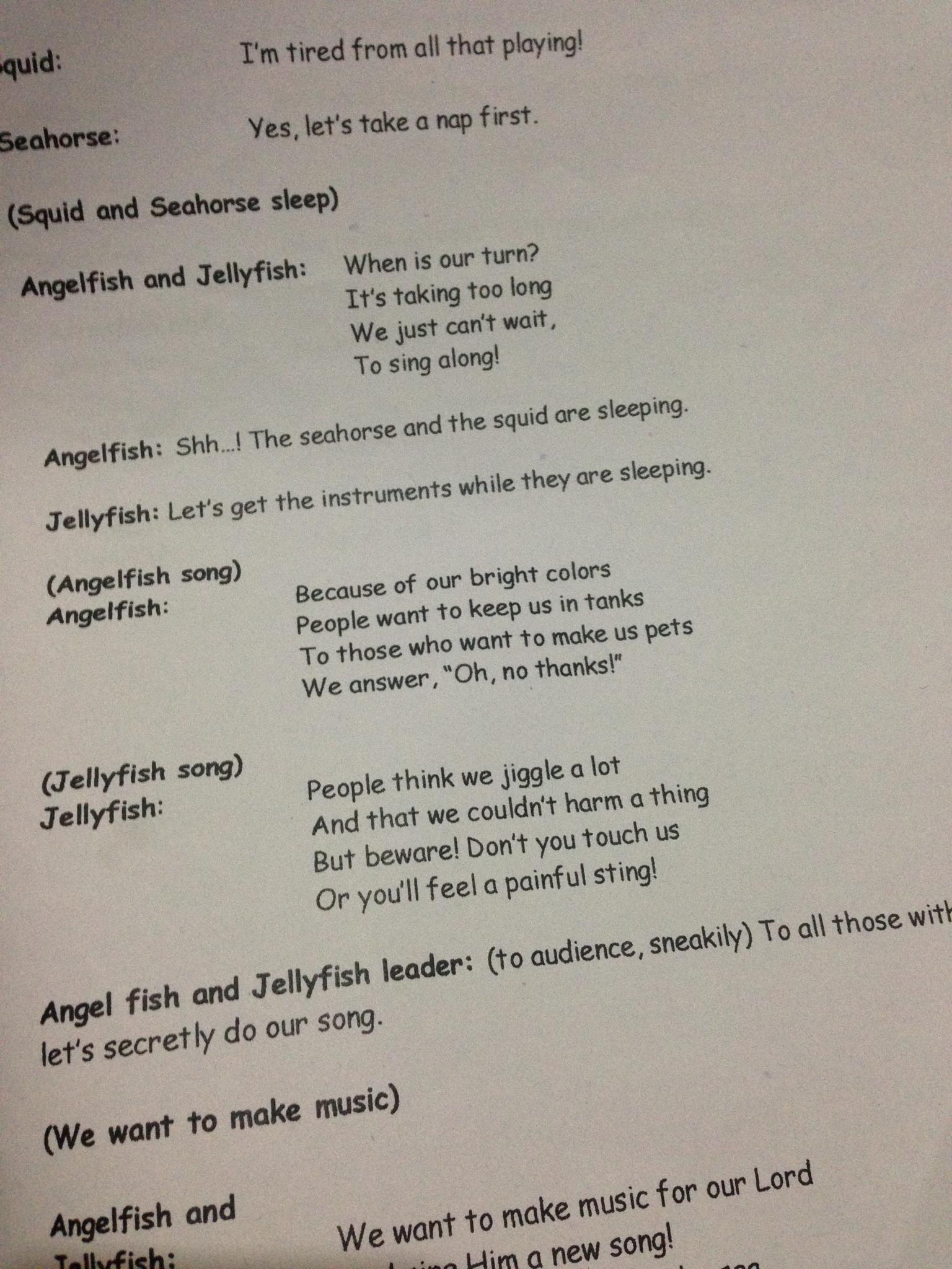 Script Sea Creatures Published: May 18, 2015Full size: 1536 × 2048Attached: Children’s Theater: Our Trumpets Playshop Experience « » You might also like:Children’s Theater: Our Trumpets Playshop ExperienceVIRAL: 4-Year-Old Maji Throws Tantrums For A Cause [Video]On Stage In PJsUp For Grabs: 3 Cute Crochet HatsIs Your Child Over-Praised?5 Things To Add To Our Parenting DutiesOver in the Meadow: A Musical Story