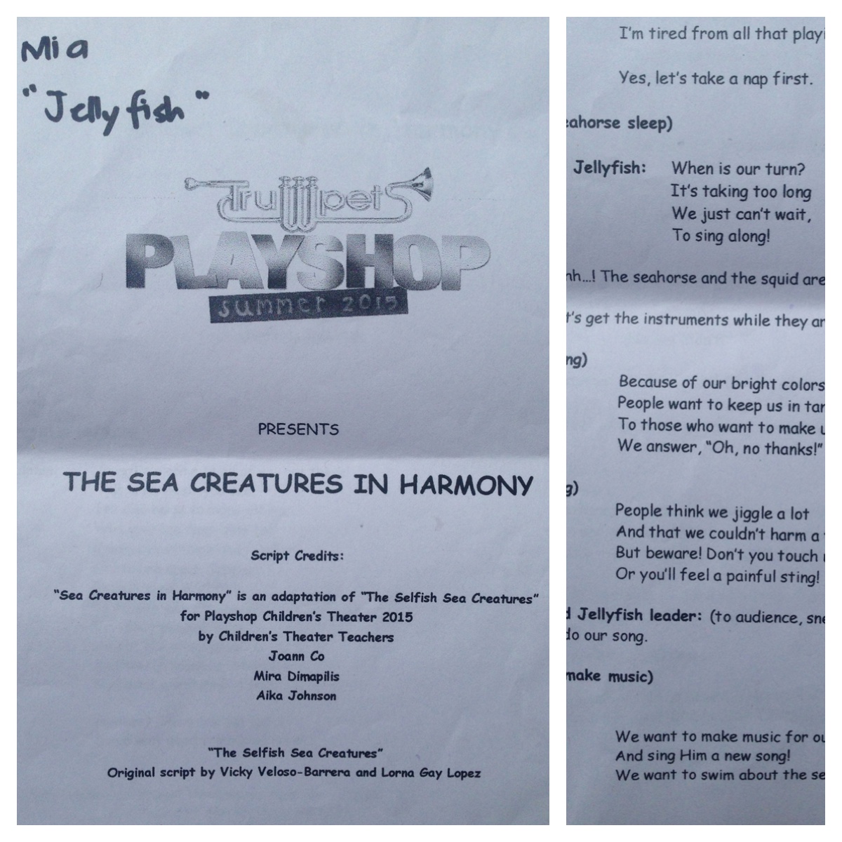 Script of Sea Creatures Published: May 20, 2015Full size: 1200 × 1200Attached: Children’s Theater: Our Trumpets Playshop Experience « » You might also like:Children’s Theater: Our Trumpets Playshop ExperienceVIRAL: 4-Year-Old Maji Throws Tantrums For A Cause [Video]On Stage In PJsUp For Grabs: 3 Cute Crochet HatsIs Your Child Over-Praised?5 Things To Add To Our Parenting DutiesOver in the Meadow: A Musical Story