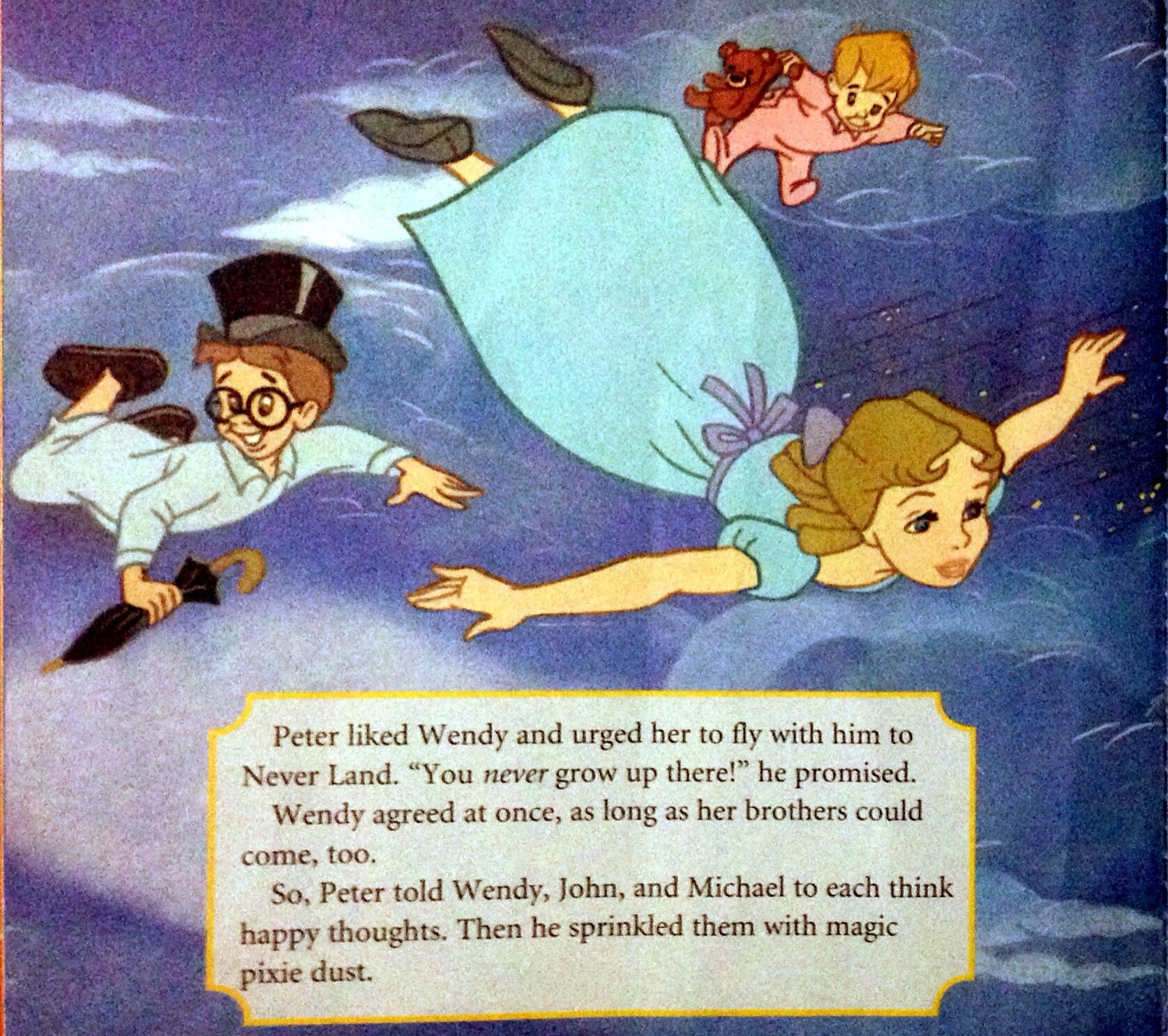 Flying Wendy John & Michael Published: July 9, 2015Full size: 1674 × 1485Attached: Sprinkle Me With Pixie Dust « » You might also like:Sprinkle Me With Pixie DustReady, Set, Fly!Our Trip to the National Planetarium MuseumChoosing the Right Storybooks For Your ChildBringing The Pixie Magic To LifeOur Annie Story